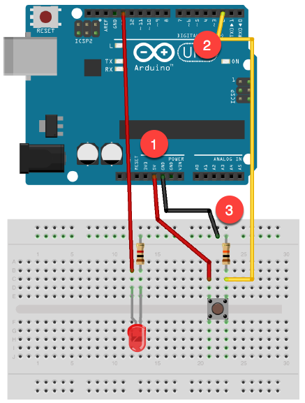 I refer you to the wiring schematic of a push button connected to the Arduino (you may ignore the external LED):
